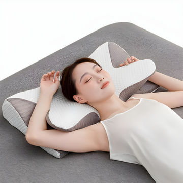 Het unieke vlindervormige ontwerp past perfect in de natuurlijke bocht van je nek, wat superieure uitlijning en ondersteuning biedt gedurende de nacht.