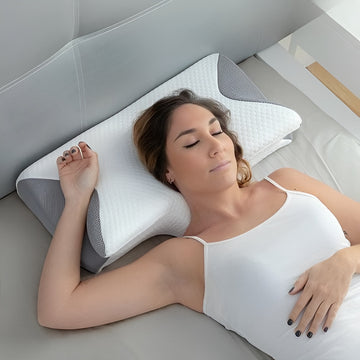De vlindershape van het kussen is ontworpen om gerichte ondersteuning te bieden voor je nek en schouders. Het helpt de juiste uitlijning van de wervelkolom te behouden en vermindert druk op het cervicale gebied, wat leidt tot pijnverlichting en meer comfort.